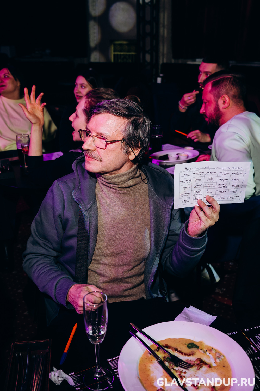 Общая продолжительность ивента — 2–2.5 часа. Еда и напитки оплачиваются отдельно. Вход строго 18+. Билеты входные с привязкой к определённому столику или месту — менеджер зала комфортно разместит Вас в соответствии с купленным билетом. Возможно размещение с другими гостями за одним столом!